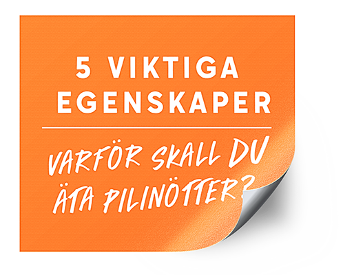 Pilinöten, som har en rik smörig och unik smak, är ett bra val för dig som strävar efter en bättre hälsa. Att nyttigt inte bara behöver vara nyttigt, utan även gott, är en frid för såväl sinne som kropp. Pilinöten tillför snabbt naturlig energi till din kropp samtidigt som den fyller på med mängder av näringsämnen. Pilinöten är ett perfekt val för dig som är på språng, behöver ladda om eller bara är sugen på något gott. Ett nyttigt val, för en bättre hälsa.
